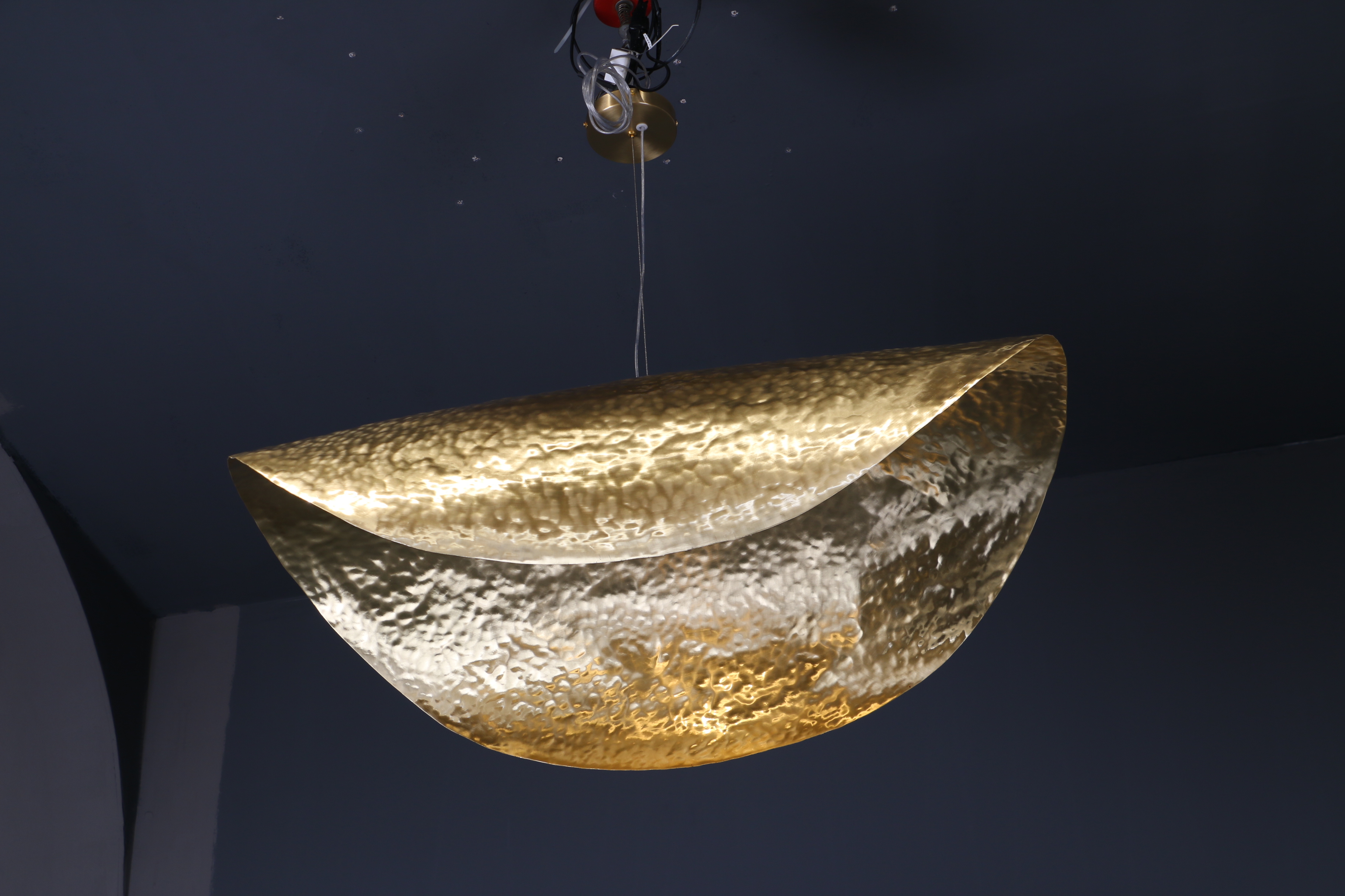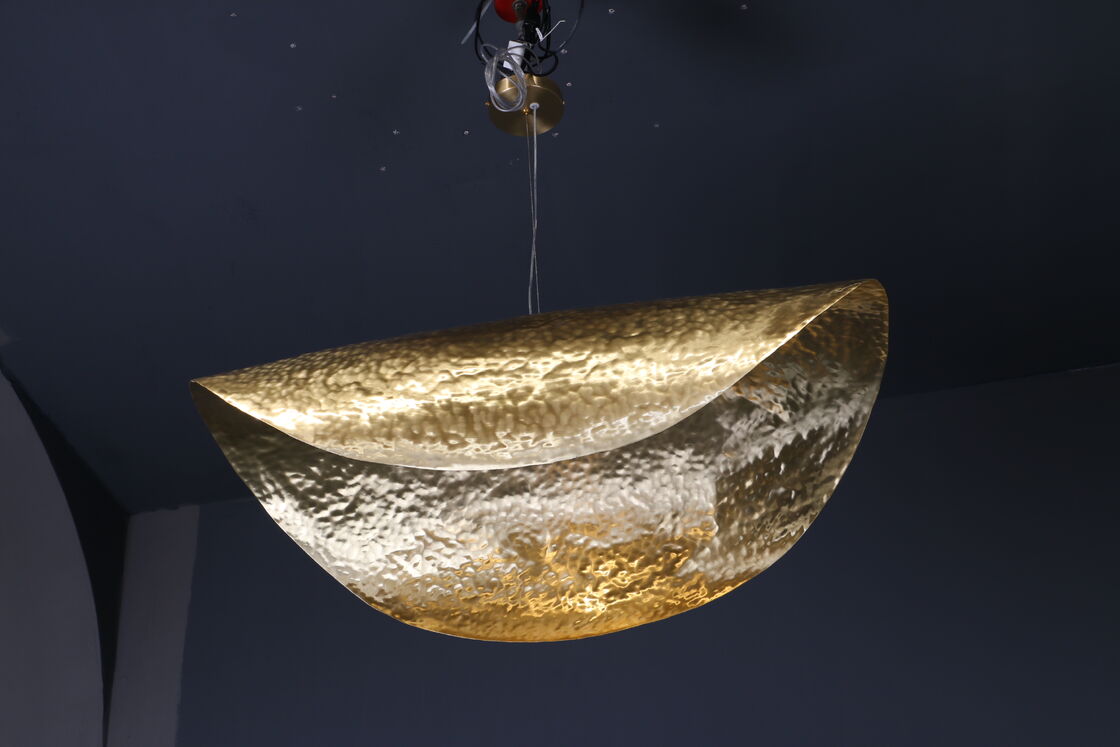 Disponible en finitions or tout en cuivre ou en laiton, il dégage une ambiance de luxe post-moderne, parfaite pour les villas, les salons ou les salles à manger.